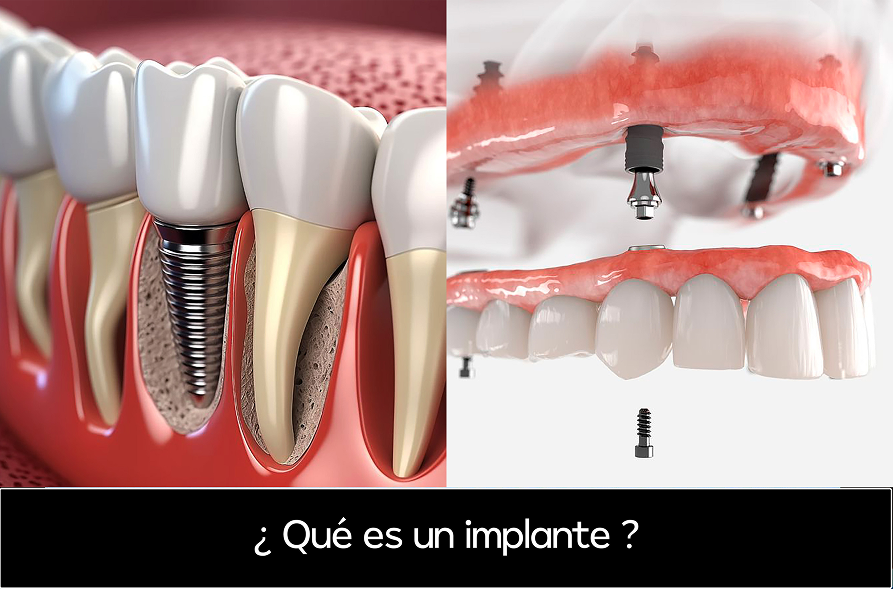 Un implante dental es una pequeña estructura de titanio que se coloca en el hueso maxilar o mandibular y actúa como raíz artificial. Sobre este soporte, se coloca posteriormente una corona dental que imita a la perfección la forma, color y función de un diente natural.